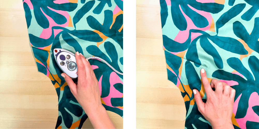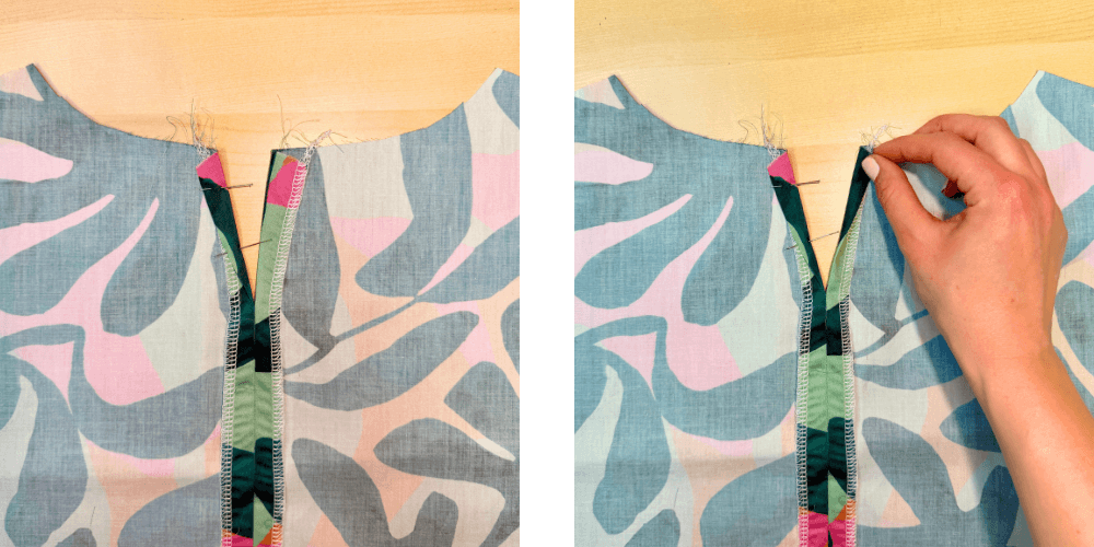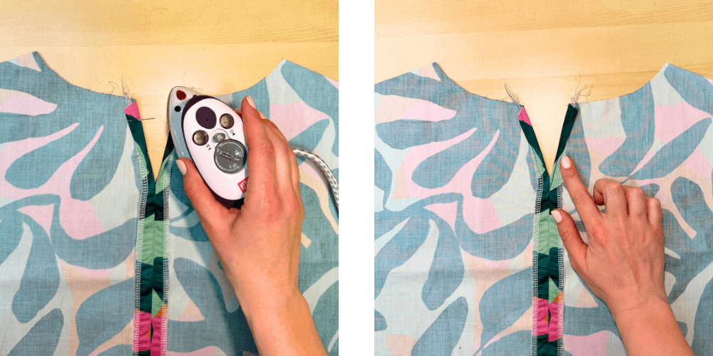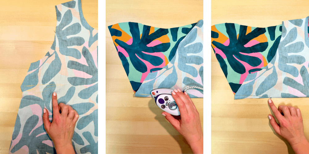 Sprednji del zložimo glede na všitek, tako da se sredinska črta ujema s prepogibom. Zalikamo in zašijemo všitek. Všitek nato razpremo in ga razlikamo.