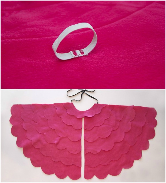 Na vsaki četrtini krila, nekje vmes našijete še elastiko v krogu, tja boste ob uporabi zataknili roke, da bodo krila ostala na mestu.