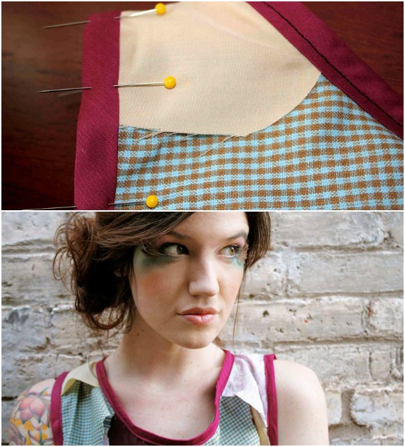 Obleko sešijte skupaj na ramenskem in stranskem delu ter izdelajte spodnji rob. Rokavno in vratno okroglino boste zaključili na koncu.