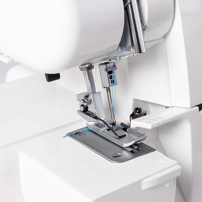 Stroj ima dve igli in štiri sukance, prav tako pa ponuja diferencialni transport, ki je idealen za obrobljanje elastičnih materialov, pletiv. Diferencialni transport preprečuje nabiranje ali raztezanje materiala, kar je še posebej uporabno pri ustvarjanju posebnih efektov na blagu. Zgornji nož se lahko odmakne, kar omogoča tudi dekorativno šivanje.