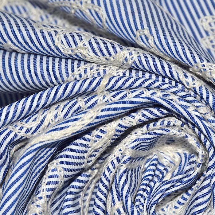 Tkanina je nežna, zato se pri izdelavi uporablja tanjše igle debeline od 60 do 80.