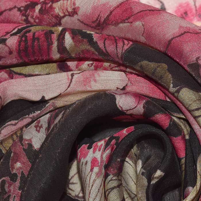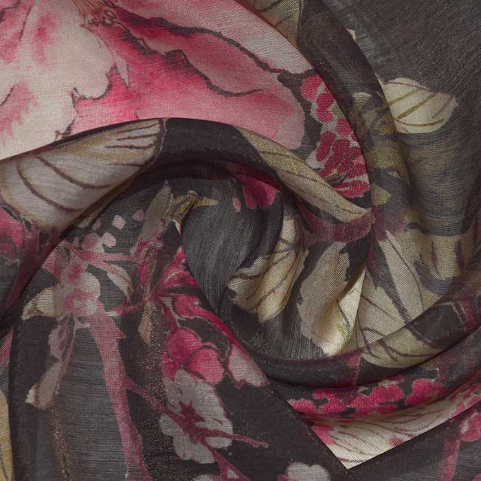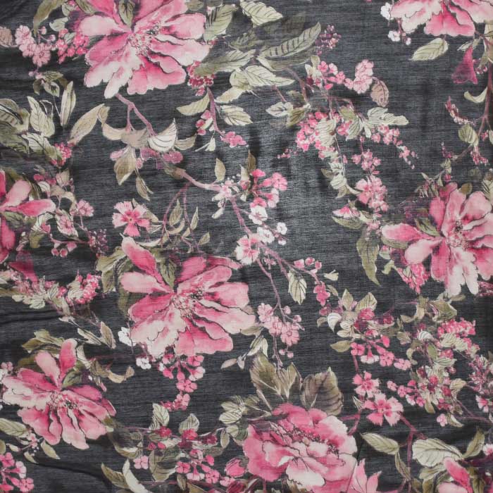 Tkanina, tanjša, tencel, cvetlični, 30415-2, črna