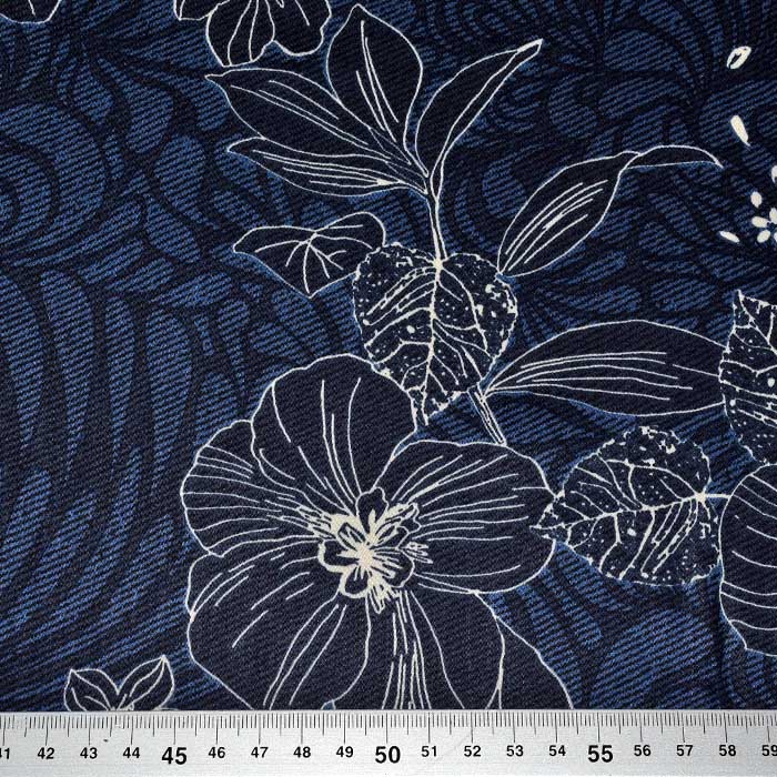 Tkanina, viskoza, saten, cvetlični, 30426-11, modra