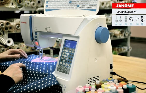 - In na koncu še najboljše: kralj in kraljica, brez njiju res ne gre ... potrebujete klasičen šivalni stroj in overlock ... moja najljubša znamka je Janome ... ne morem reči, da že od začetka prisegam na Janome, saj ga res nisem poznala. Šivala sem na Lidlovem šivalnem stroju, ker sem ga podedovala ... a sem ga zelo hitro prerasla. Ni bil elektronski, omogočal je omejeno število šivov ... in ko se je ponudila prva priložnost sem se pocrkljala z strojem Janome ... in tej znamki ostajam zvesta v vseh pogledih. Zakaj? Nič nimam proti stroju iz Lidla, saj je za začetnika primeren. Res je, za prve šive je odličen – v kolikor že v začetku ne nagaja – vendar se zgodi, da ga zelo hitro prerasteš ... in ko naletiš na kakše težave – ko ti trga sukanec, nabira blago, ... kam se obrniti? V Lidlu te prav hitro odslovijo, ker vedo še manj kot ti ... serviserji pa tudi najraje ne bi imeli opravka s teboj. Zato je pomembno, da se ne zaletimo v prvo akcijo, ki jo ponujajo bližnje trgovine, mi pa si močno želimo šivati. Svetujem počakati ... in si že v štartu privoščiti stroj vsaj srednjega cenovnega razreda, kar je navadno od cca. 350 € dalje, v kolikor želimo, da je stroj elektronski in nam vsaj približno nudi tisto, kar bomo že prav hitro ugotovili, da nujno potrebujemo. Jaz zase pravim: lahko mi vzameš vse, pustiš le 5 programov šivanja (čeprav jih moj stroj nudi že cca. 400), pa program za šivanje gumbnic in gumbov ... a enostavno ne bi mogla več živeti brez mojih škarjic na stroju – to je tisti gumb, ki poskrbi, da okrog sebe nimaš poplavo nitk ... strokovno se temu reče avtomatičen odrez sukanca ... no pa še nekaj mi ne vzeti: avtomatskega vdevanja sukanca ... brez tega bi tudi kmalu odnehala s šivanjem. Torej jaz sem za Janome. Fino je, če je že v začetku Janome TXL 607, čeprav je odličen in še boljši izbor svetovna uspešnica Skyline ( različica S3 in S5). V tem tutorialu sem se spogledovala z S5 ... in bilo je odlično.