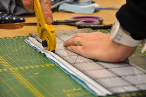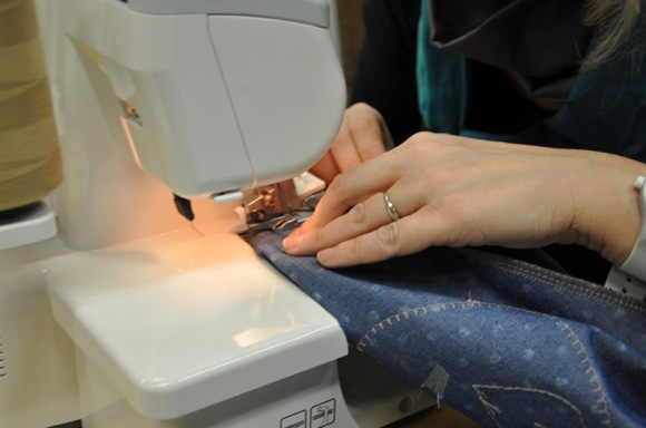 Najprej se lotim kosov blaga iz katerih bodo nastali patenti. Z overlockom je to bistveno enostavnejše, kot če bi šivali na navaden šivalni stroj s cik-cak ali pa z overlock šivom.