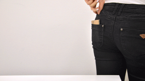 Praktična denarnica ima predel za bankovce, žepek za kovance in štiri reže za kreditne kartice. Zaradi svoje majhnosti (10 x 8,5 cm) je nemoteča za nošenje v sprednjem ali zadnjem žepu. Izdelana je zelo hitro, saj jo sestavljajo samo trije šivi.