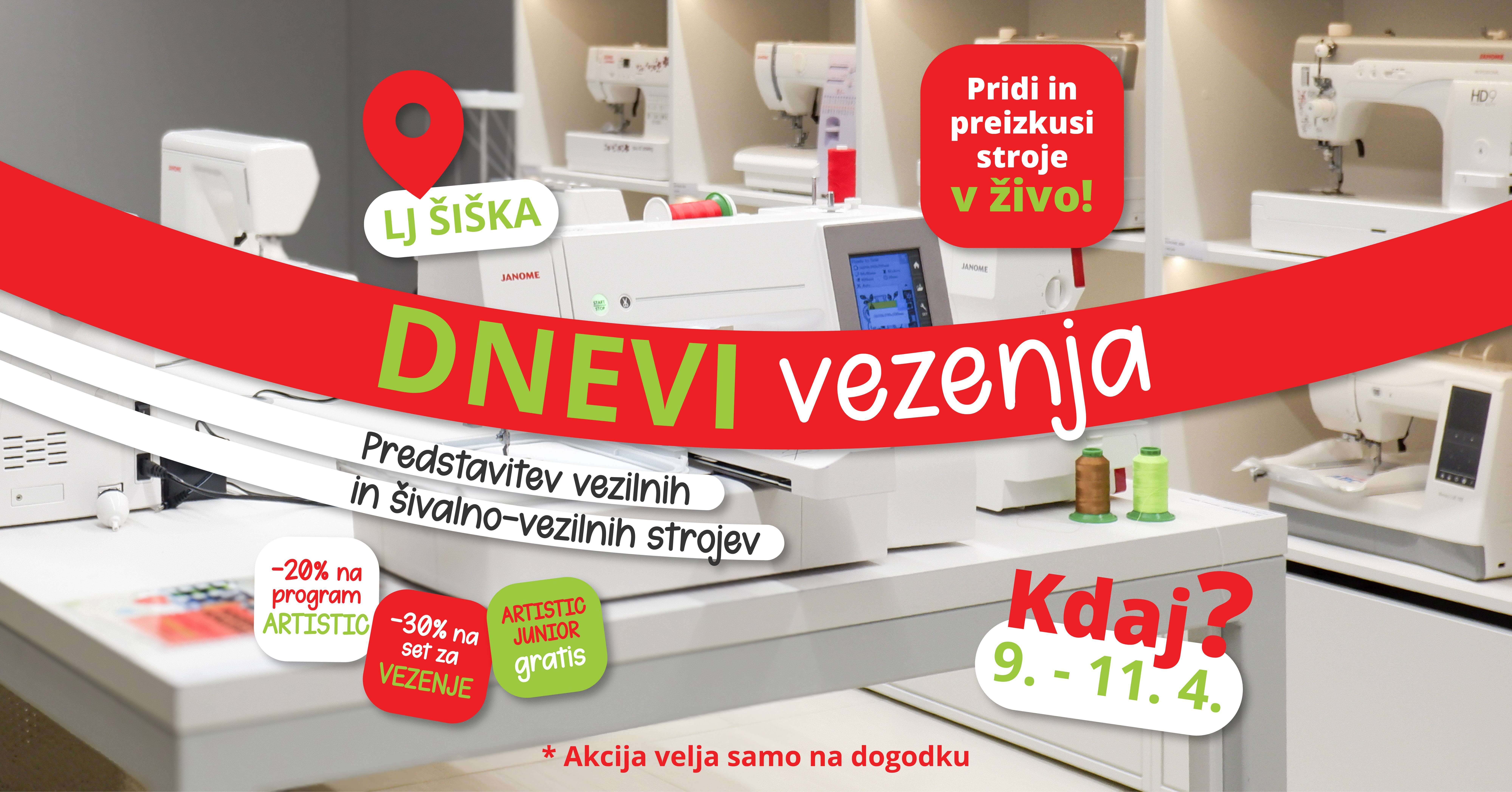 Pridi na DNEVE VEZENJA in preizkusi stroje v živo in odkrij nove možnosti ustvarjanja z vezenjem.