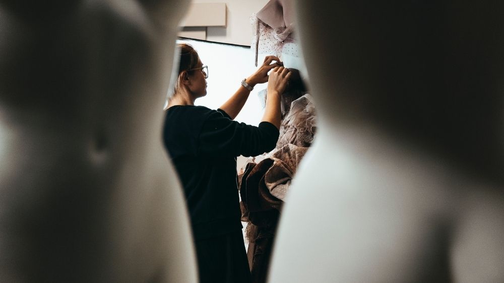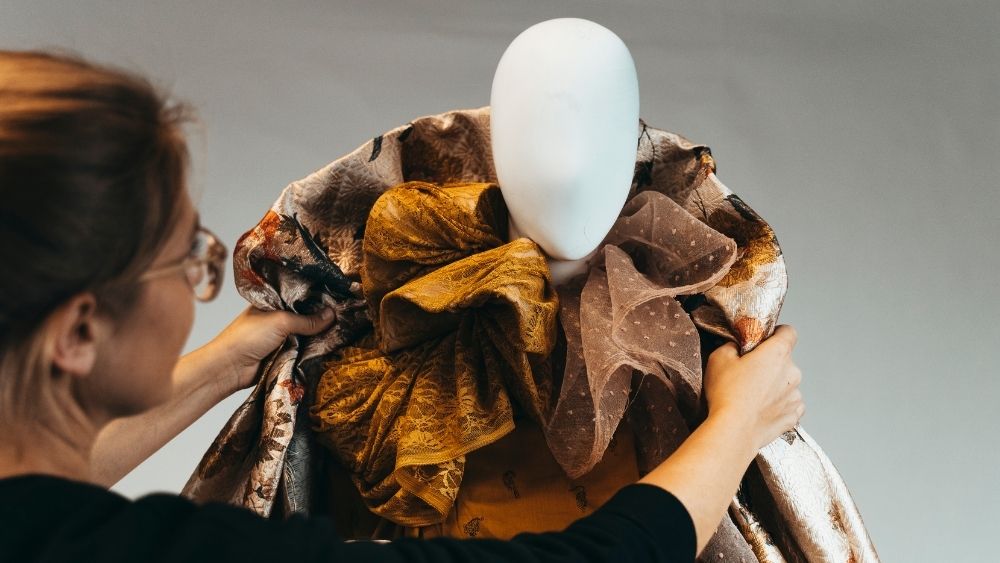 Ker se lutk ne oblači v končne izdelke, kot smo tega vajeni pri klasičnih trgovinskih izložbah, je predstavitev metražnega blaga izziv, ki zahteva veliko pozornosti za detajle. Kljub začetnim skicam in začrtani silhueti, se tekom procesa izdelave in oblačenja porodi veliko novih idej in navdiha, ki pride s samim blagom in načinom, kako se to obnaša na lutki.