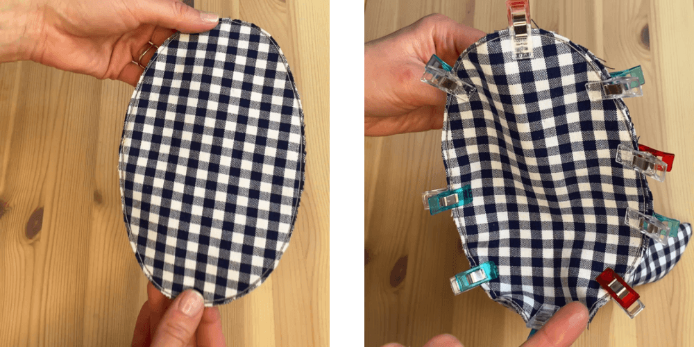 Oba dela položimo lice na lice in ju sešijemo skupaj.