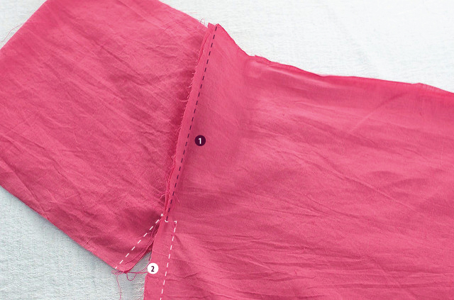 Na mestih, ki ste jih speli, naredite šiv tako, da rokave prišijete na sprednji in zadnji del.