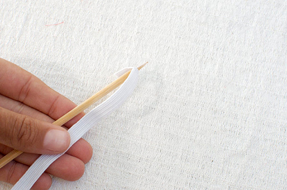 Z nečim trdim, ali večjo varnostno zaponko vdenite elastiko v cev, ki ste jo pripravili.