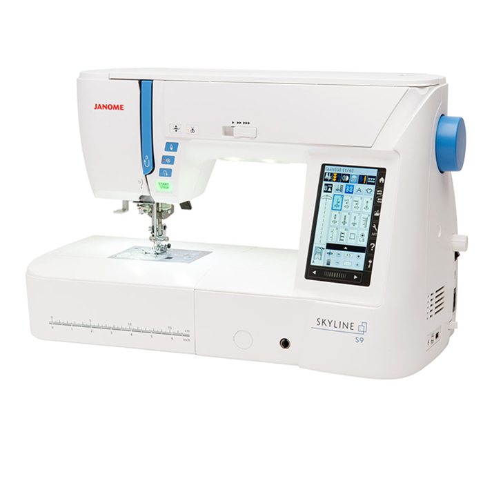 Skyline S9 je zelo podoben priljubljenemu modelu Skyline S7, vendar vključuje dodatne funkcije, kot so samodejni dvig šivalne tačke, avtomatska napetost in pritisk šivalne tačke ter odrez sukanca. Prav tako ima ozke tačke za zgornji pogon materiala, Acu Flex, ki je idealen za šivanje zelo debelih in delikatnih materialov, kot so usnje, jeans ali debelo platno.