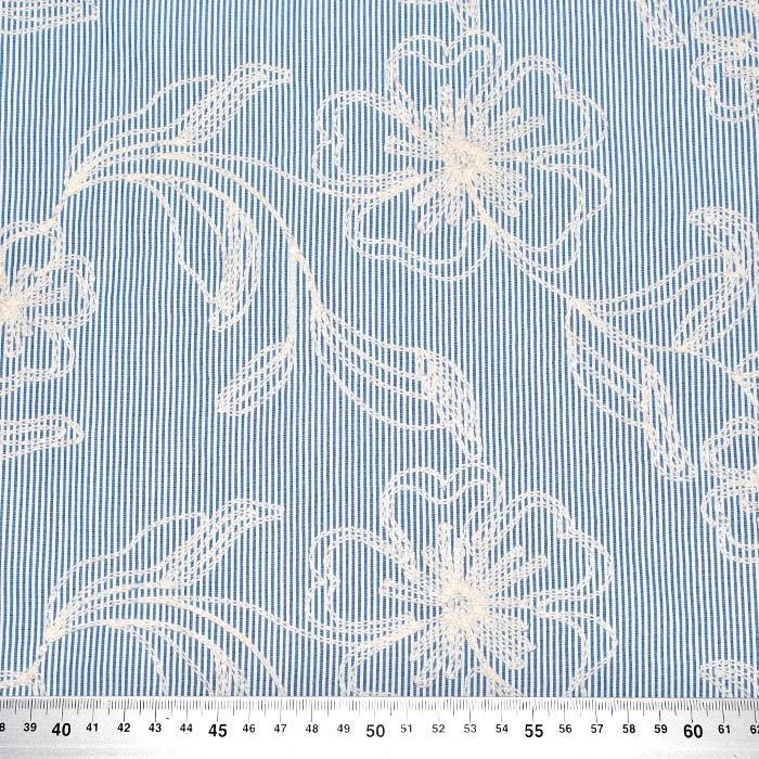 Bombaž, poplin, vezenina, cvetlični, 30636-059, svetlo modra