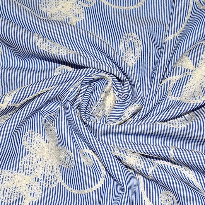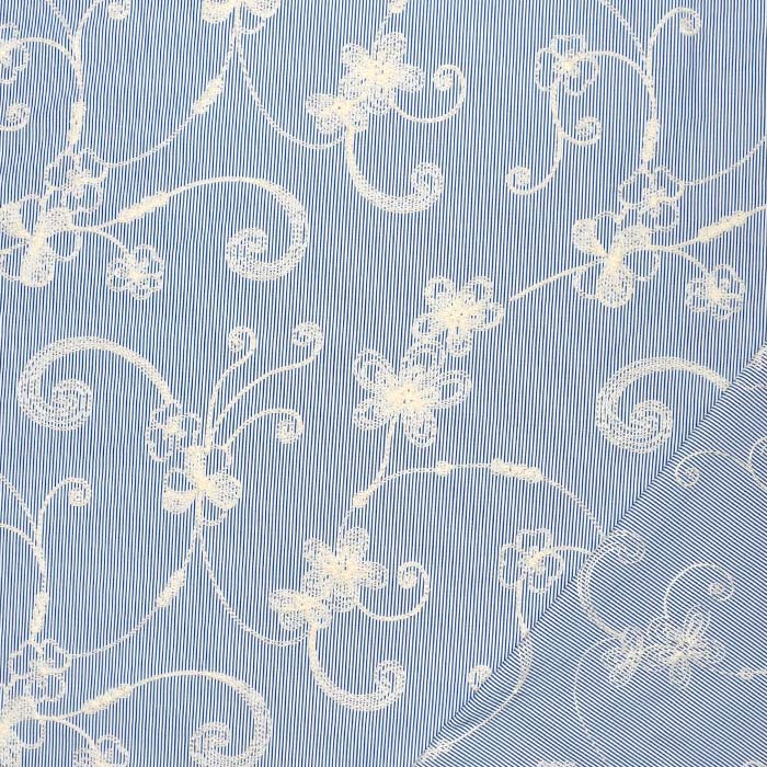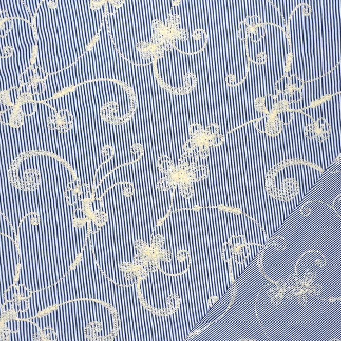 Bombaž, poplin, vezenina, cvetlični, 30637-051, modra