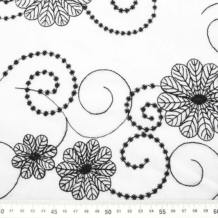 Bombaž, vezen, cvetlični, 15619-112, bela