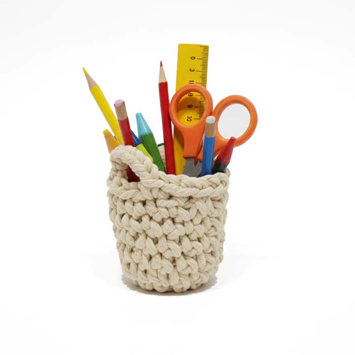 Ustvarite svojo unikatno makrame košarico v velikosti 8 x 10 cm s tem preprostim DIY kompletom. Komplet je primeren tako za začetnike kot za vse, ki radi ustvarjate z vrvico in vozli. Izdelana košarica je odlična za shranjevanje pisal, škarij, čopičev ali drugih drobnih predmetov in bo lepo dopolnila vaš dom z naravnim videzom. V kompletu prejmete ustrezno količino kakovostne preje, kvačko, vse pripomočke ki jih potrebujete za izdelavo in jasna slikovna navodila. Dodana je tudi QR-koda s slovenskimi navodili.