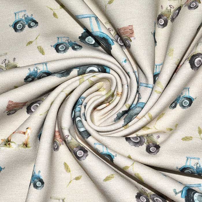 Bombažni jersey je elastičen in prijeten na otip. Najpogosteje se uporablja za majice, tunike, športna oblačila, trenirke, pajkice, otroška oblačila, spodnje perilo, kape, trakove itd. Odlikuje ga preprosto vzdrževanje in izredna vpojnost.
