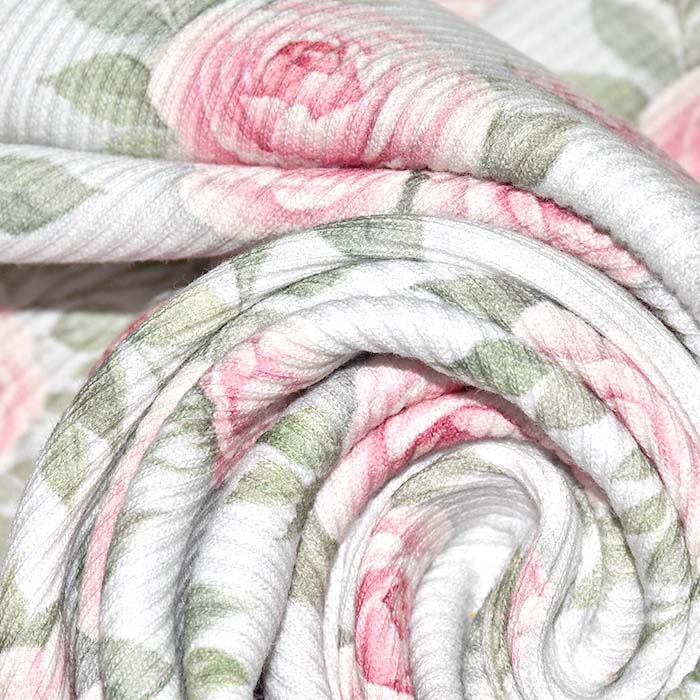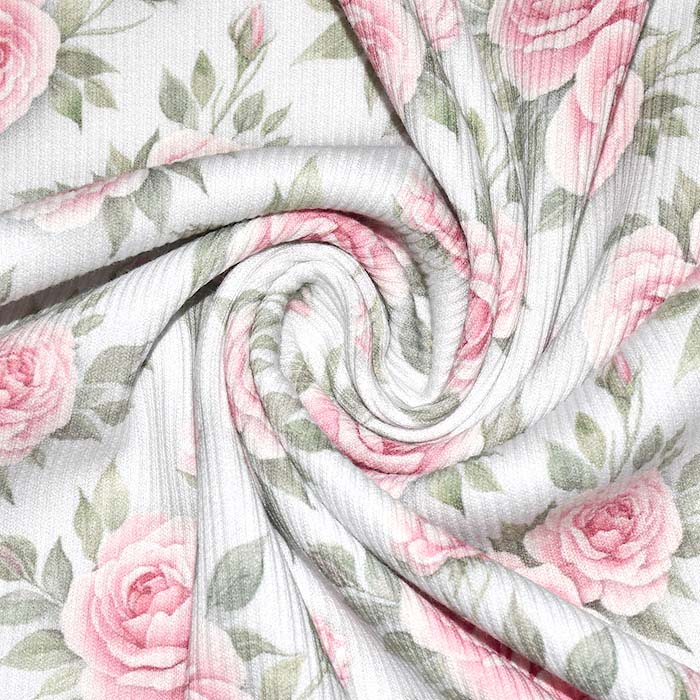 Jersey, bombaž, rebrast, cvetlični, 30257-210