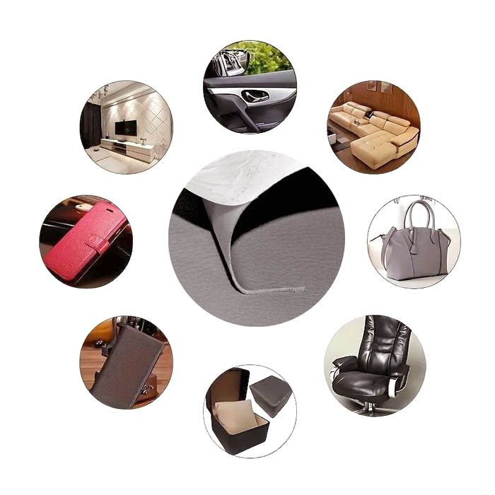 Enobarvno samolepilno umetno usnje, s katerim hitro in enostavno popravite ali obnovite pohištvo in izdelke iz umetnega usnja. Na hrbtni strani se nahaja močno lepilo, ki se močno prilepi na les, usnje ali druge materiale. Lahko se tudi oblikuje in izreže poljubne aplikacije, s katerimi popestrimo torbo, pohištvo, ipd.
